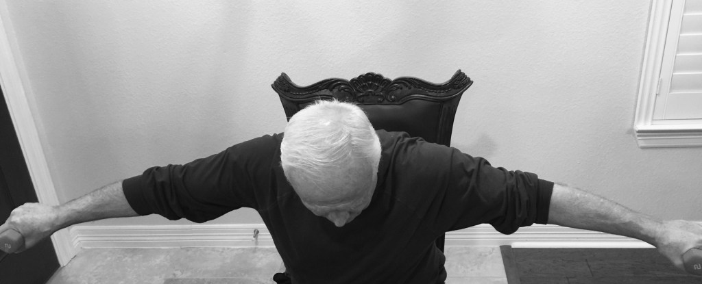 arms out to the side. Slowly lower arms to start position. Repeat15 times.